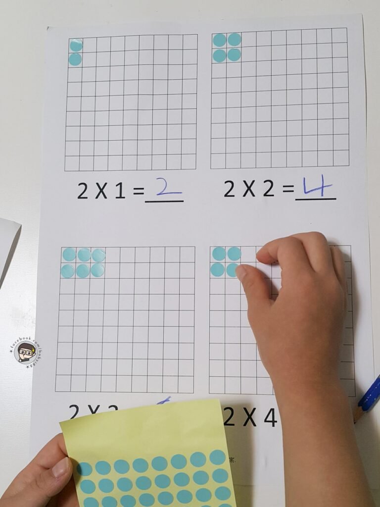 搭配圓點貼紙來學習乘法的概念