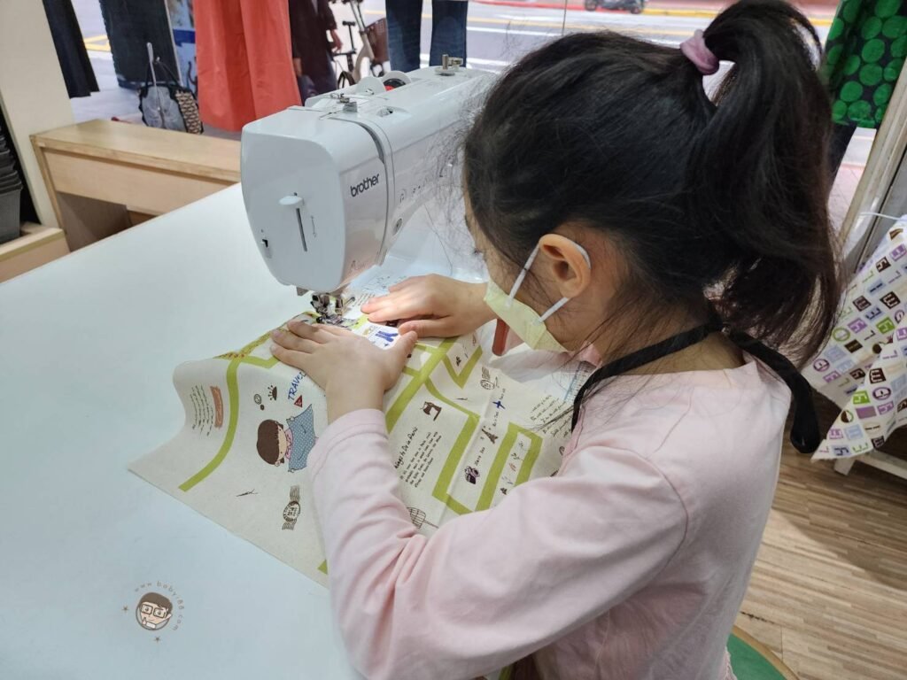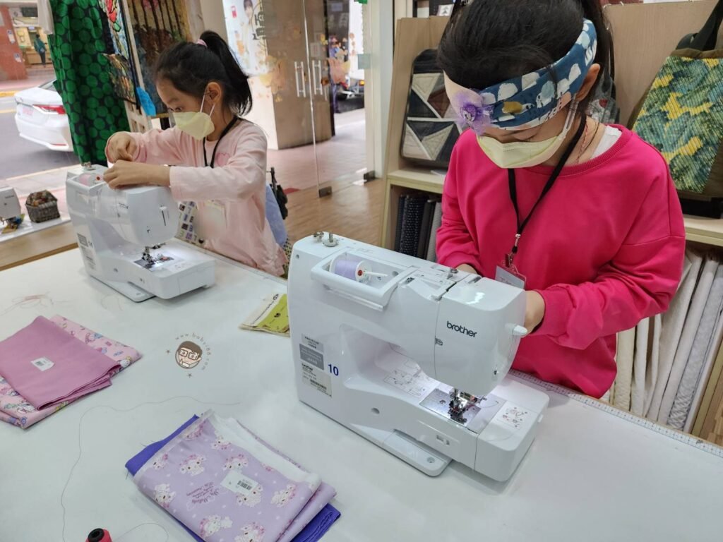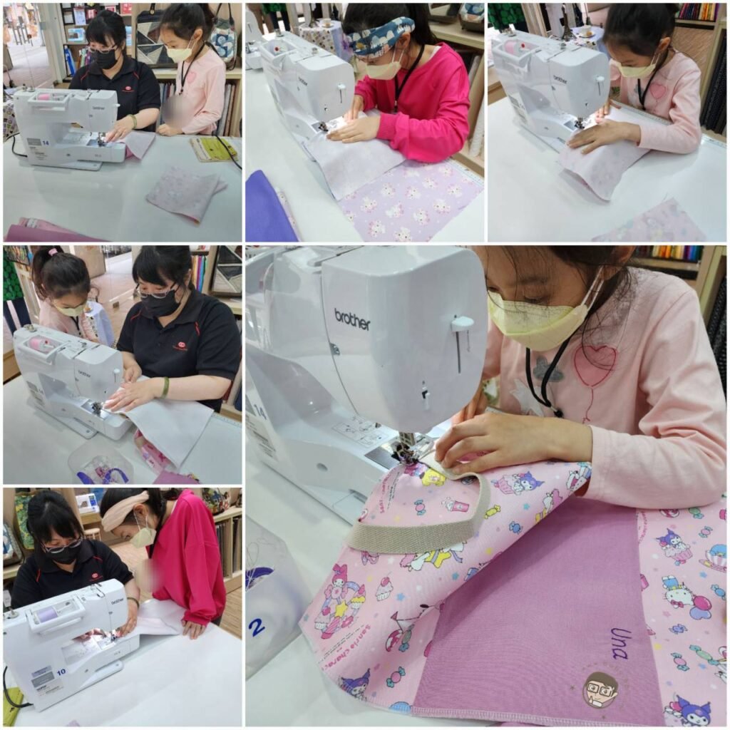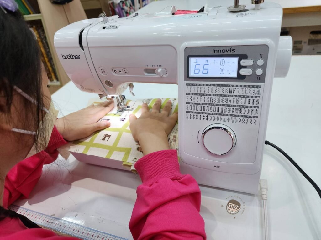 上課全程用的是日本兄弟牌brother縫紉機,一人一台,2個小孩一直誇獎縫紉機好用,操作簡單踩得又順又開心