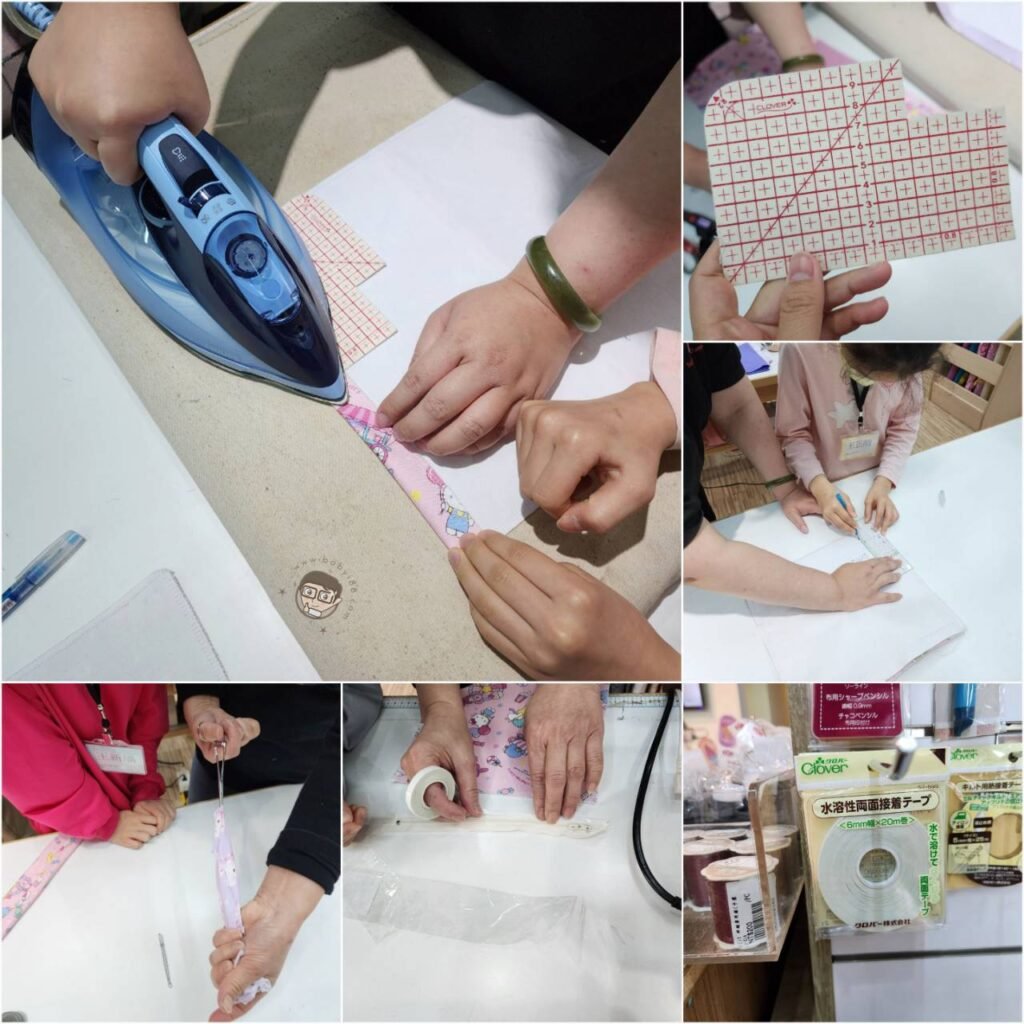 各種縫紉工具的使用與練習 – 定規尺、縫份燙尺、返裡鉗、布用雙面膠…等,縫紉對孩子來說是廣大又全新的領域,可以接觸到的工具材料非常豐富,真的是收穫滿滿