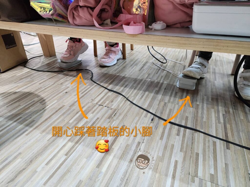 開心踩著踏板的小腳,縫紉比想像中好玩