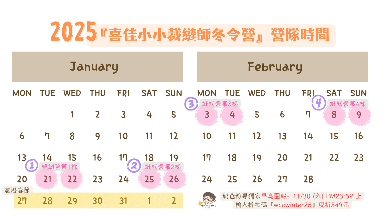 課程原價4890元,輸入折扣碼『wccwinter25』現折349元,早鳥團報價只要4050元,團報 ~ 11/30 (六) PM23:59 止