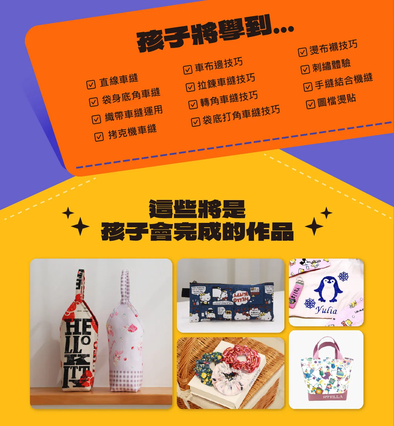 不只小孩,陪課家長也可以同步一起學習到很多縫紉的技巧,大人也想學縫紉的話,跟著孩子一起來學非常划算