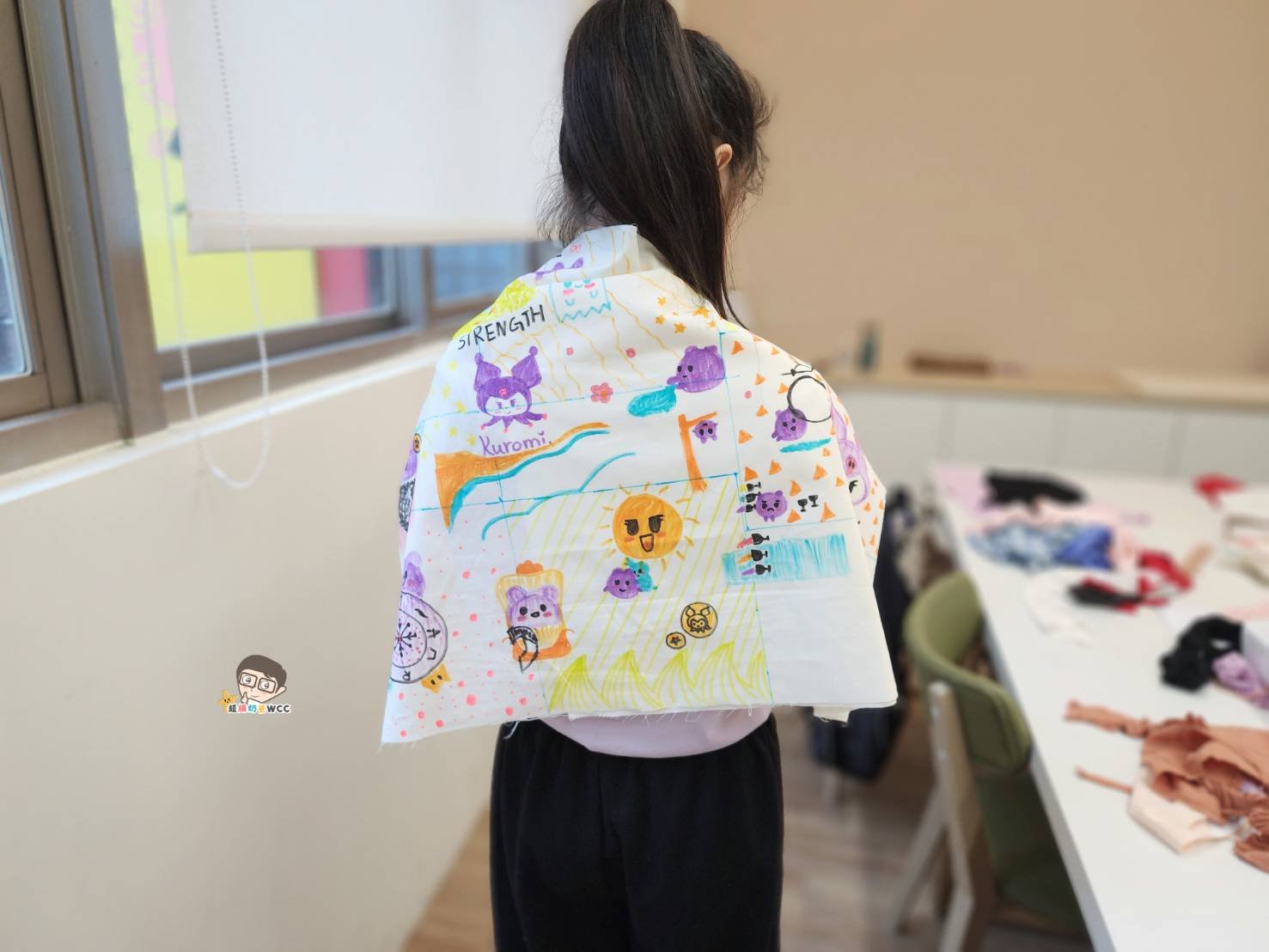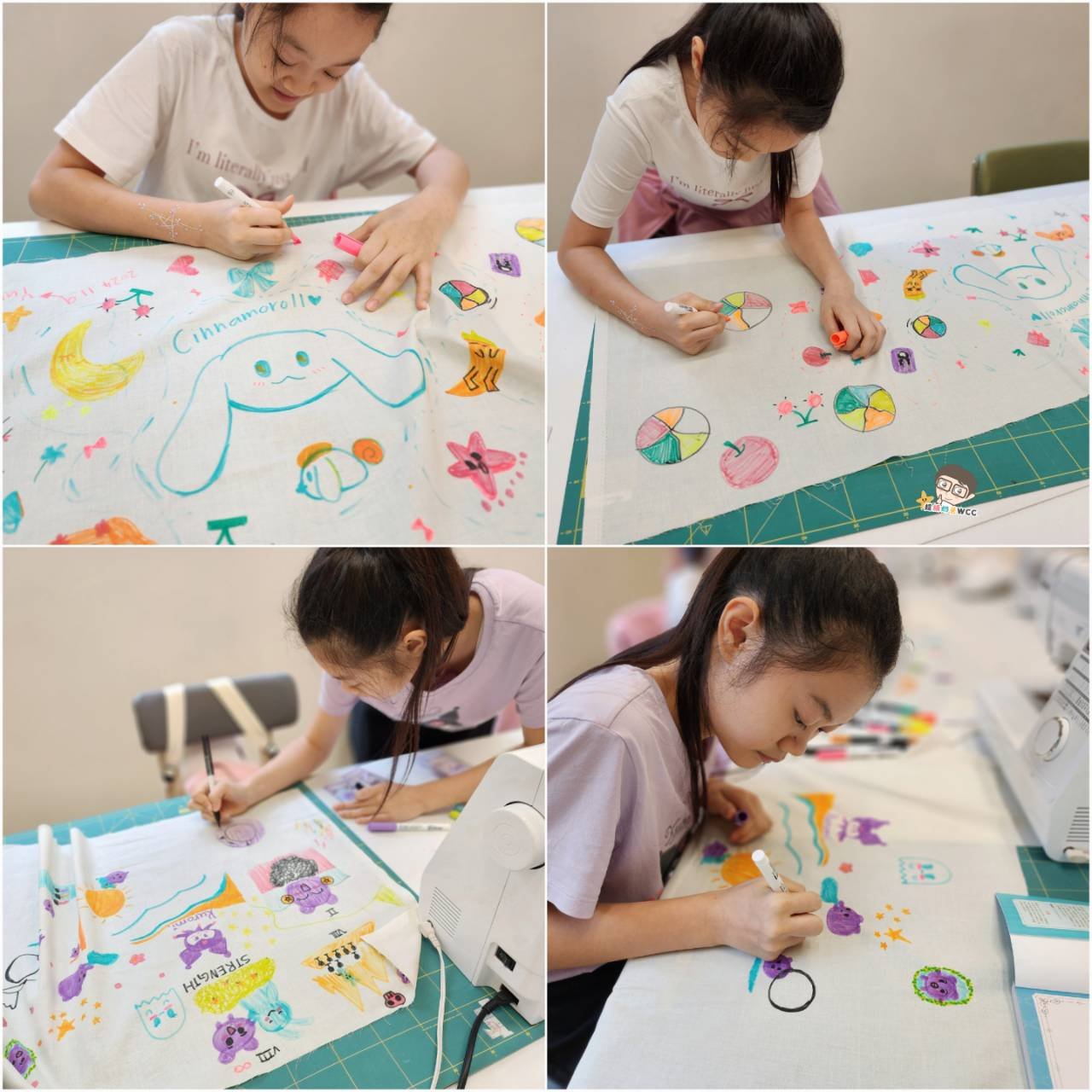這次冬令營的主題設計非常用心,以『義大利時尚雜誌VOGUE 2020年6月號兒童塗鴉畫』作為主題,結合縫紉設計技巧,由孩子自行在布料上插畫設計,將孩子的繪圖手稿結合充滿回憶的舊衣,拼貼創作出屬於自己獨一無二的縫紉新作品,展現時尚、也展現童真與成長的紀念。課程涵蓋彩繪創意、 縫紉、 布料剪貼創作、刺繡剪貼等多元技能,可以啟發孩子們的創意思考與手作能力,發揮無限的想像力