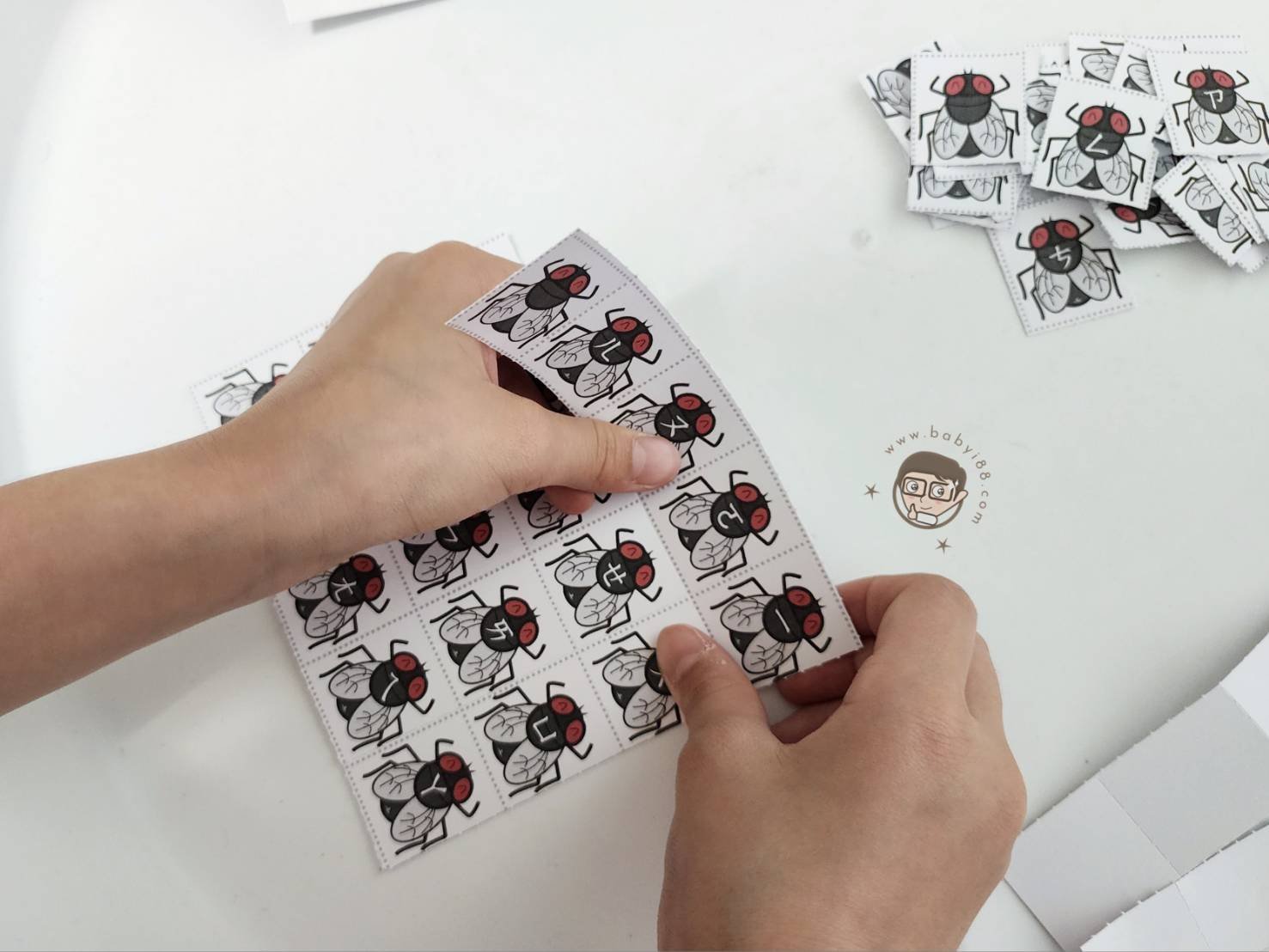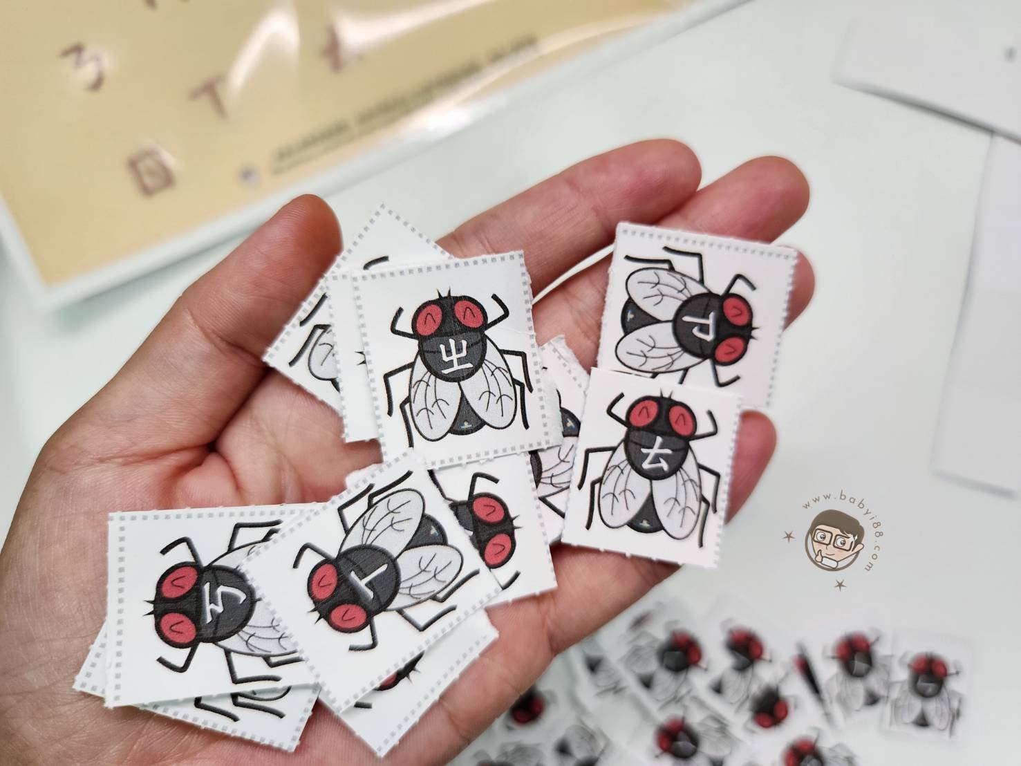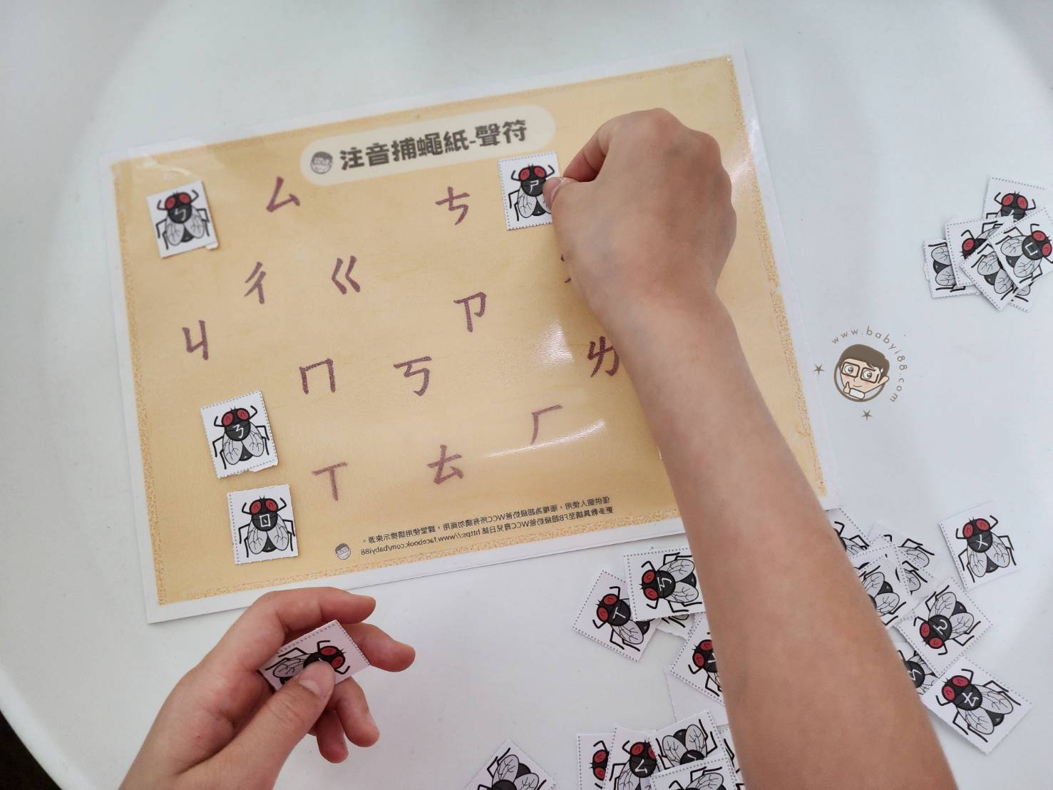 這份教具的靈感來自超級敏感的妹妹,只要蒼蠅飛過去碰到她就會哭得唏哩嘩啦來告狀,說剛剛福來(fly)用腳踢她 😂