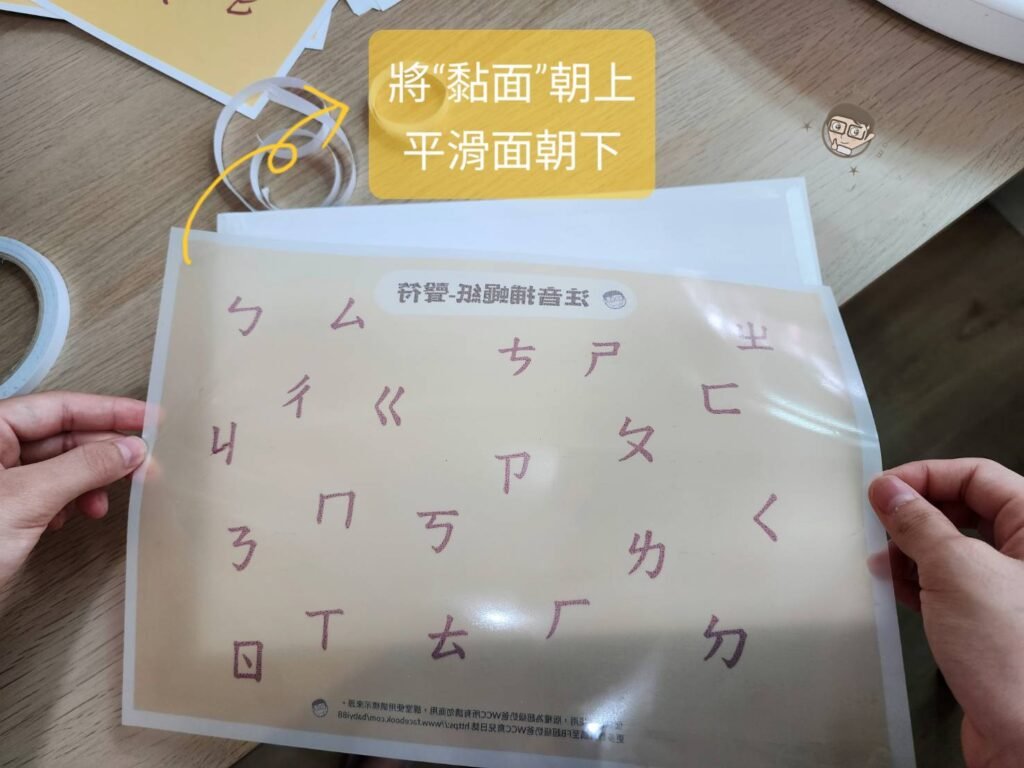 撕下來之後將黏面朝上,平滑面朝下(噴墨印表機列印出來會無法完全吸墨,小心不要碰到光滑面哦)