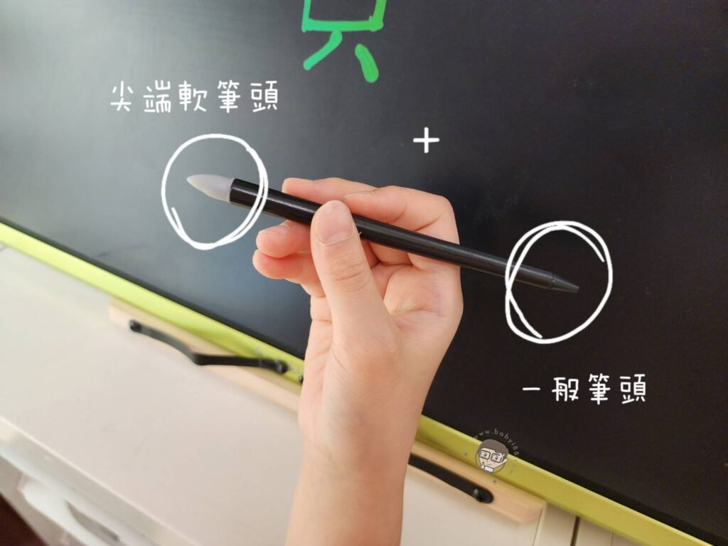尖端軟筆頭則是較軟的觸感,可以寫出書法字的效果,妹妹就特愛用毛筆頭寫字