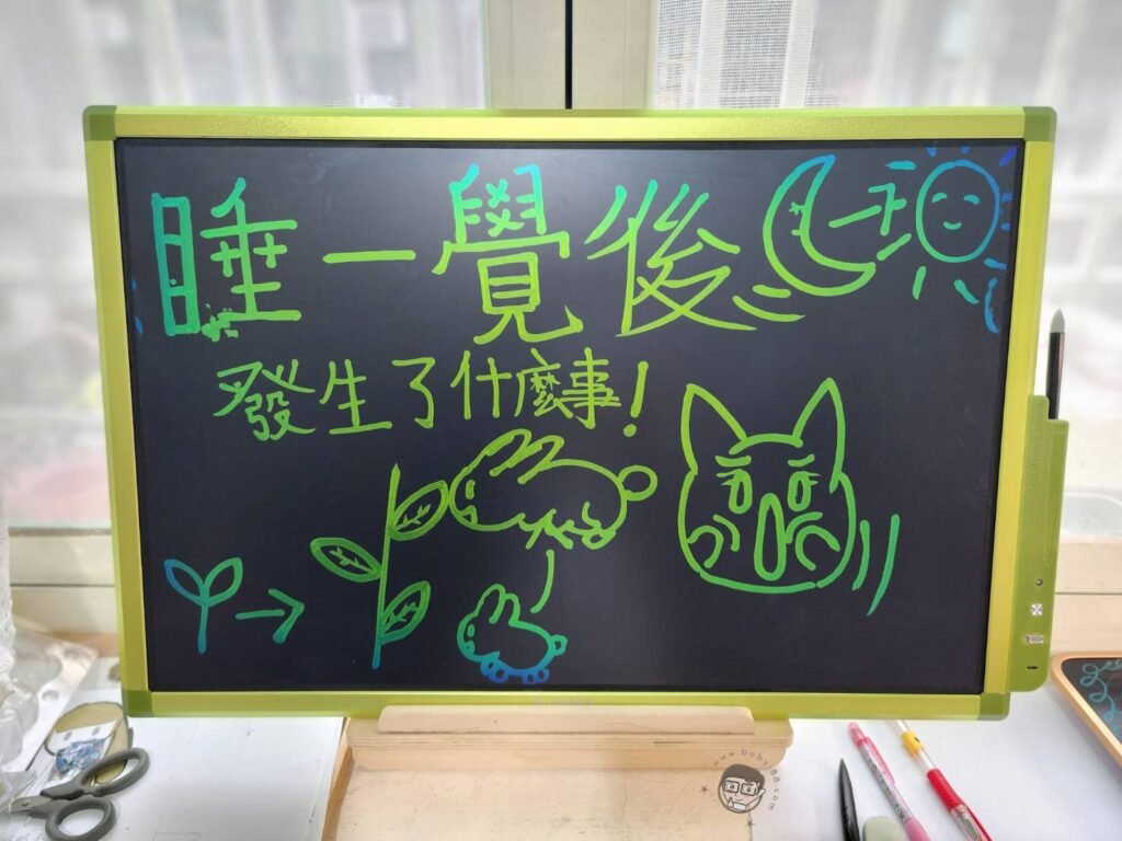 幫女兒們找到的是這個超完美手寫板【Eziwrite 環保科技創意手寫板】完美取代了傳統黑板及白板,提供小孩VVVIP級的書寫感受,不只零耗材不用再買白板筆、板擦跟清潔液,無藍光無粉塵完美兼顧環保跟孩子的健康
