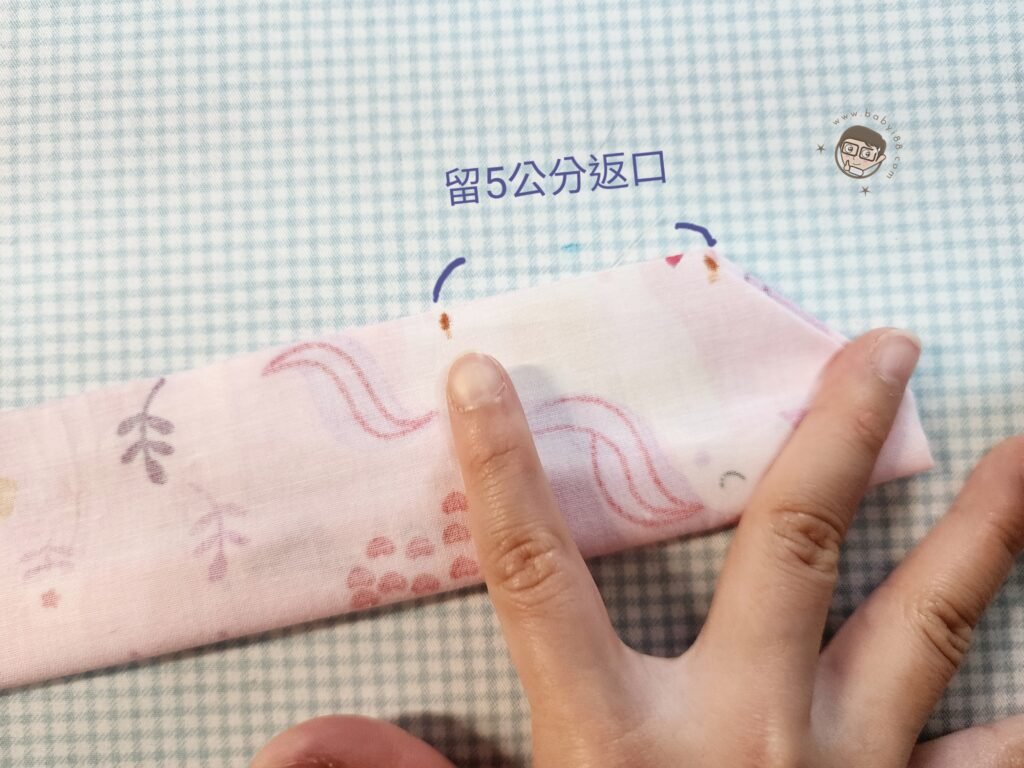 5. 接著車縫長邊,長邊留5公分返口