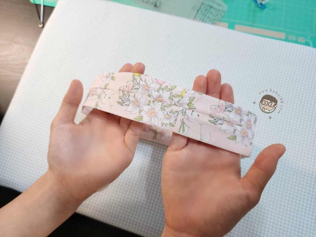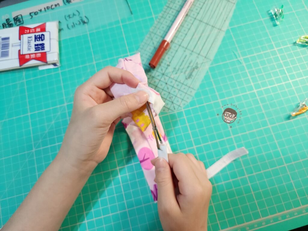 4. 短邊反面對折後車縫,翻開縫份燙平