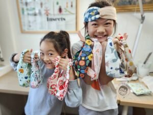 小朋友學習的速度很快,一個月前連縫紉機都還不太會操作,一個月後兩個女兒已經用得很上手了