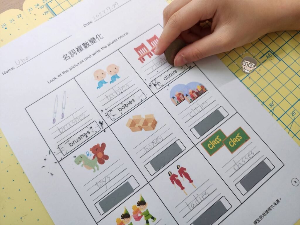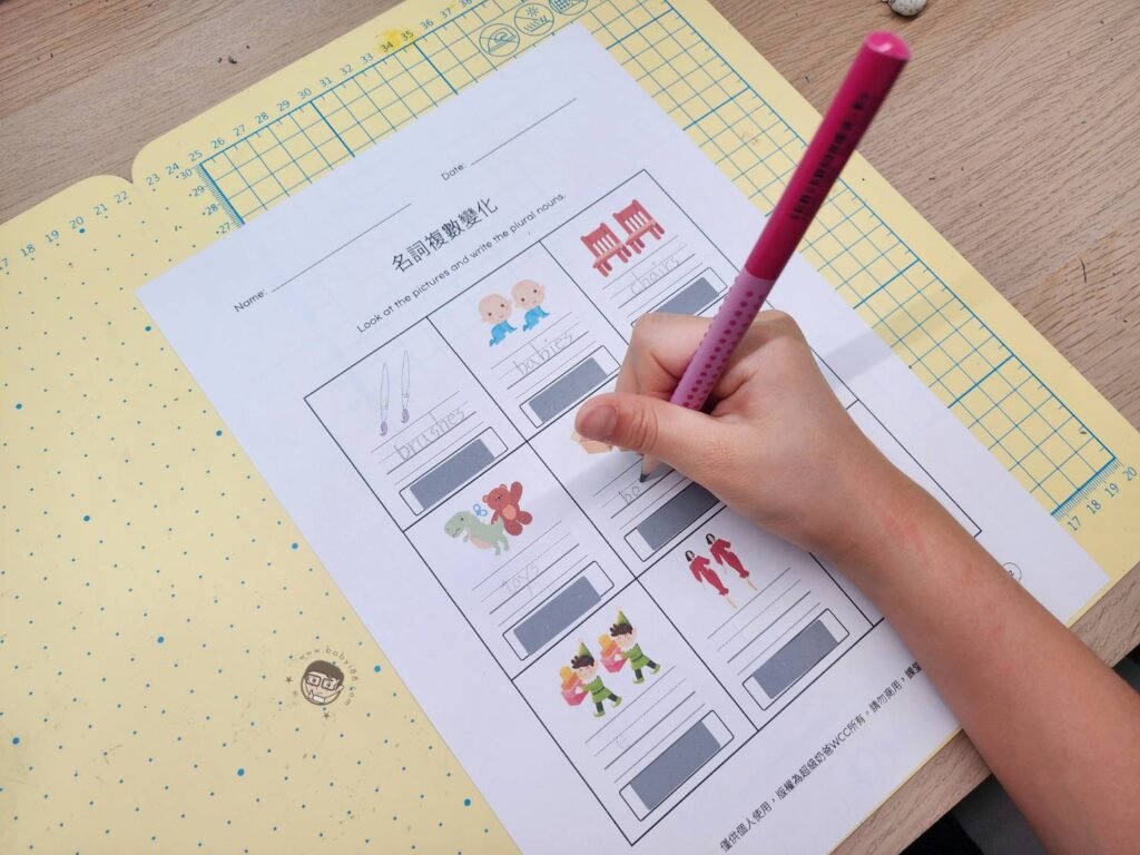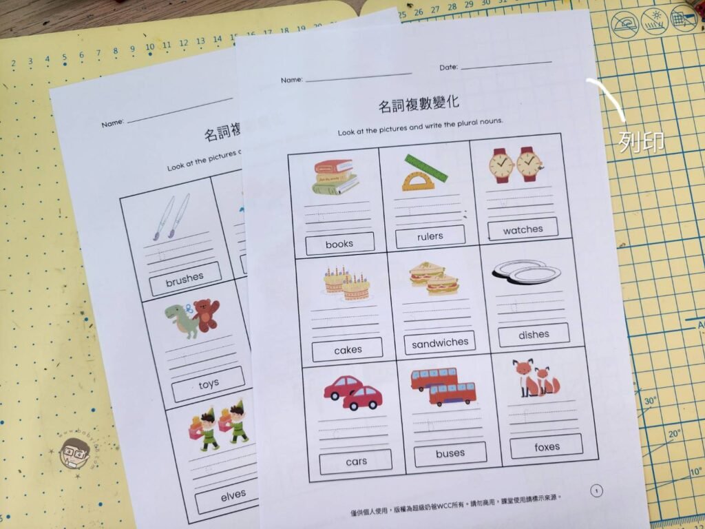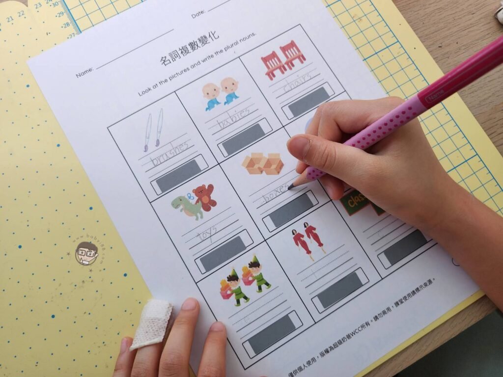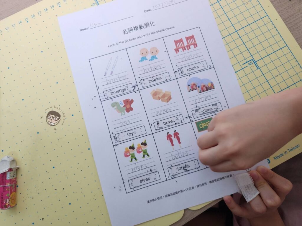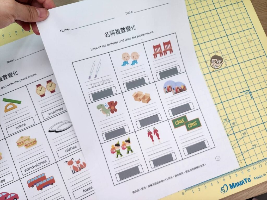 這禮拜兩個小孩乖乖上完 Ping 老師的文法課L2~L3,L3名詞複數變化已經有點複雜了呢!