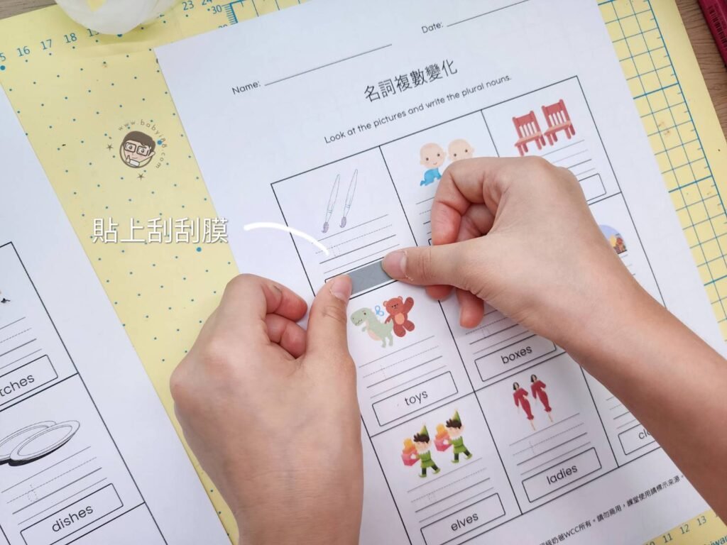 嘿嘿~全部用刮刮膜貼紙貼起來,營造讓小孩會想要趕快寫完刮開對獎的感覺,增加孩子們的好奇心