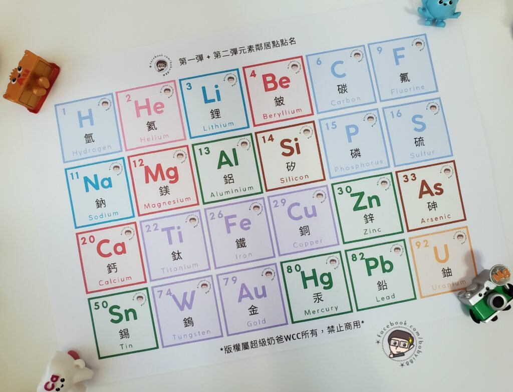 玩過前面兩個延伸遊戲,接下來來個簡單的小複習~ 老樣子,不死背,我們繼續用玩的方式來幫助孩子認識化學元素在週期 …