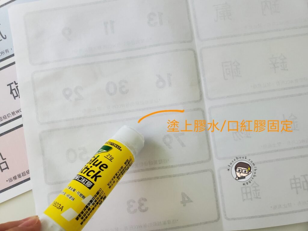 製作的方法非常簡單,在紙張備面塗上口紅膠,對齊框線黏起來