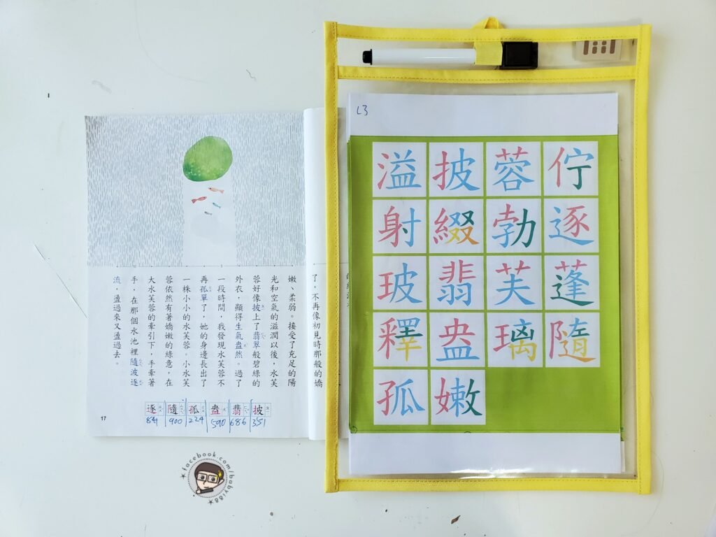 5. 放到擦寫袋裡備用,上到哪一課進度就可以直接使用