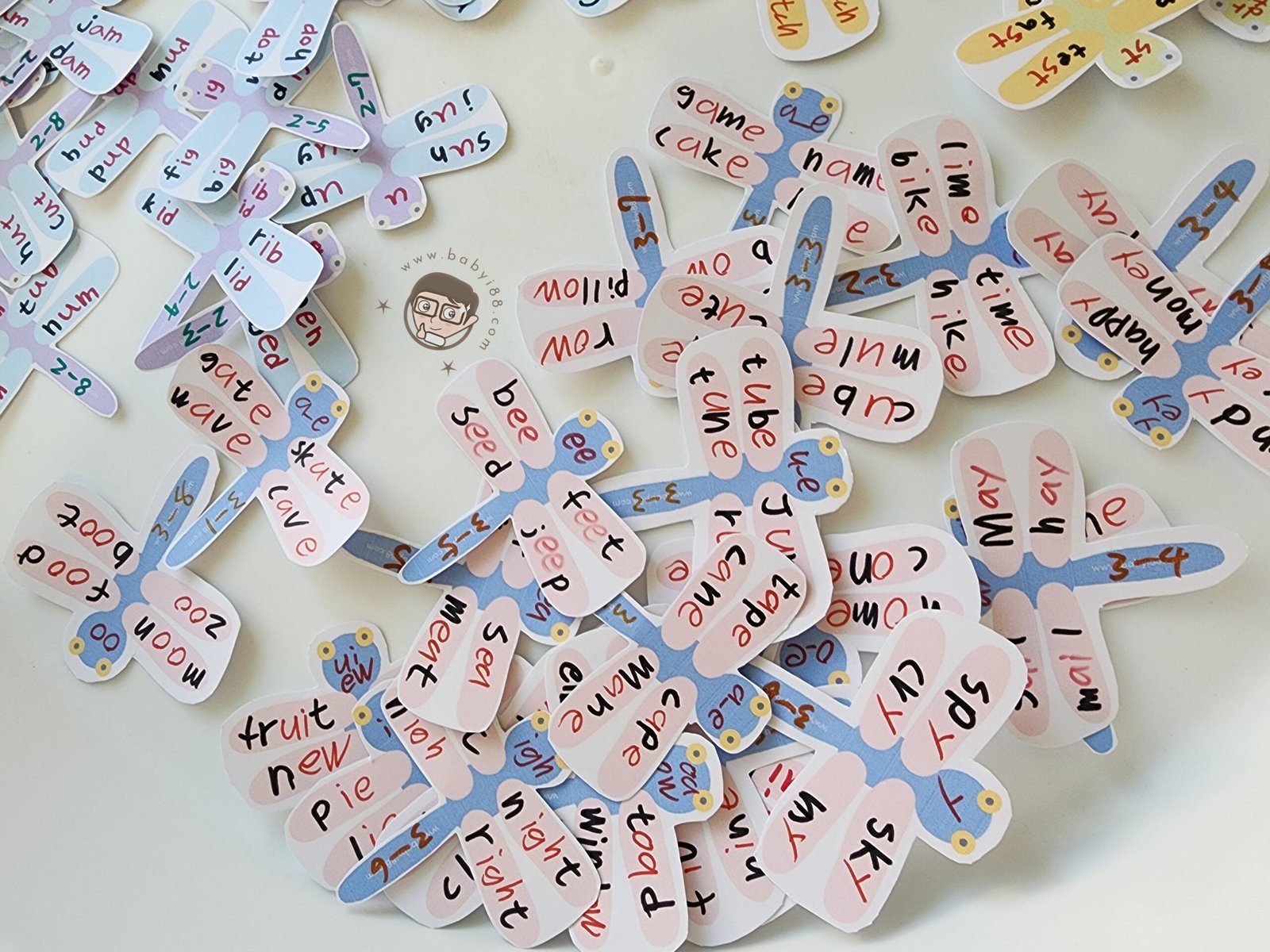 頭的地方設計可以寫發音,4片翅膀可以寫4個單字