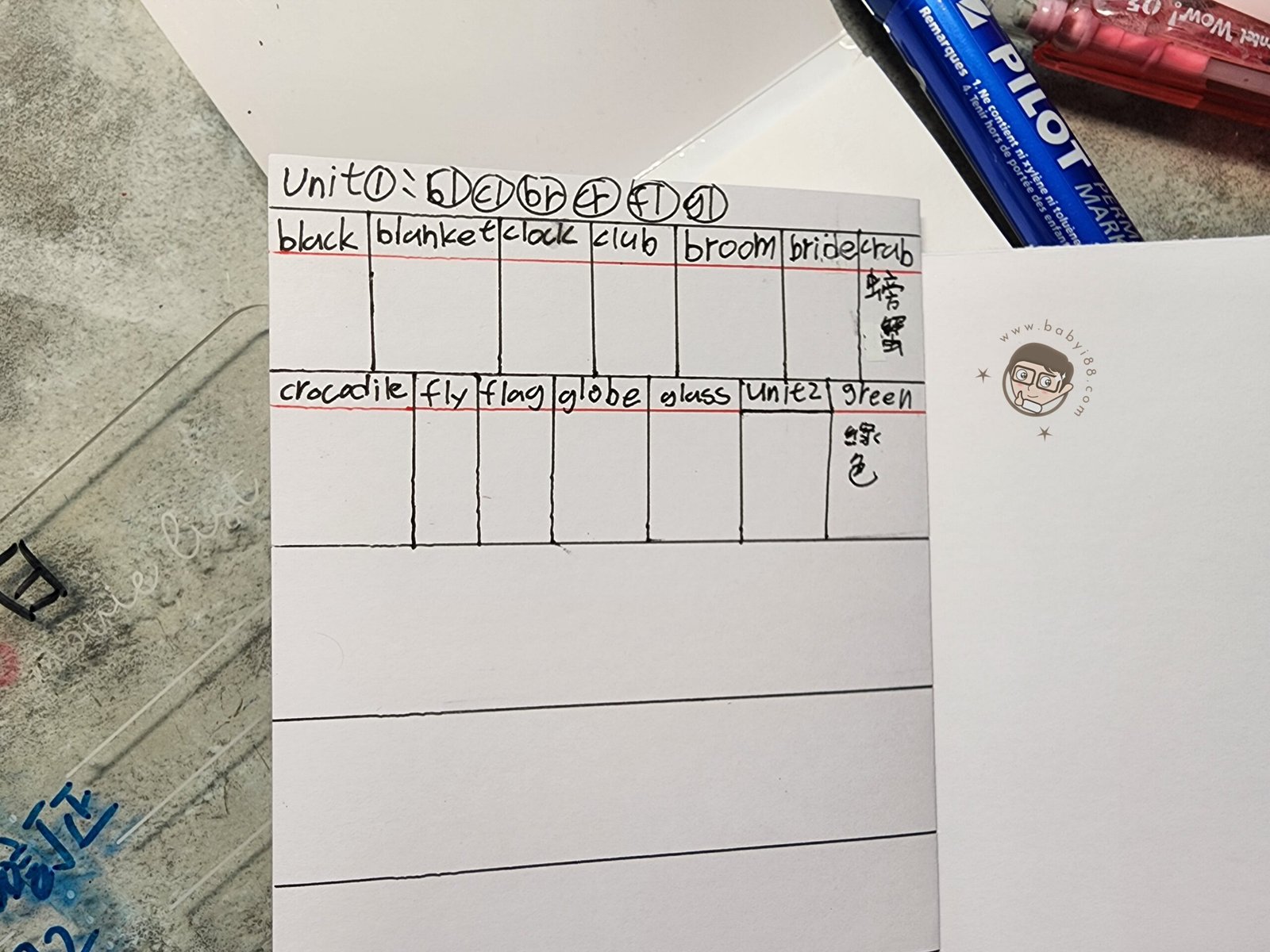 將教材裡學習到單字讓孩子一個一個整理上去