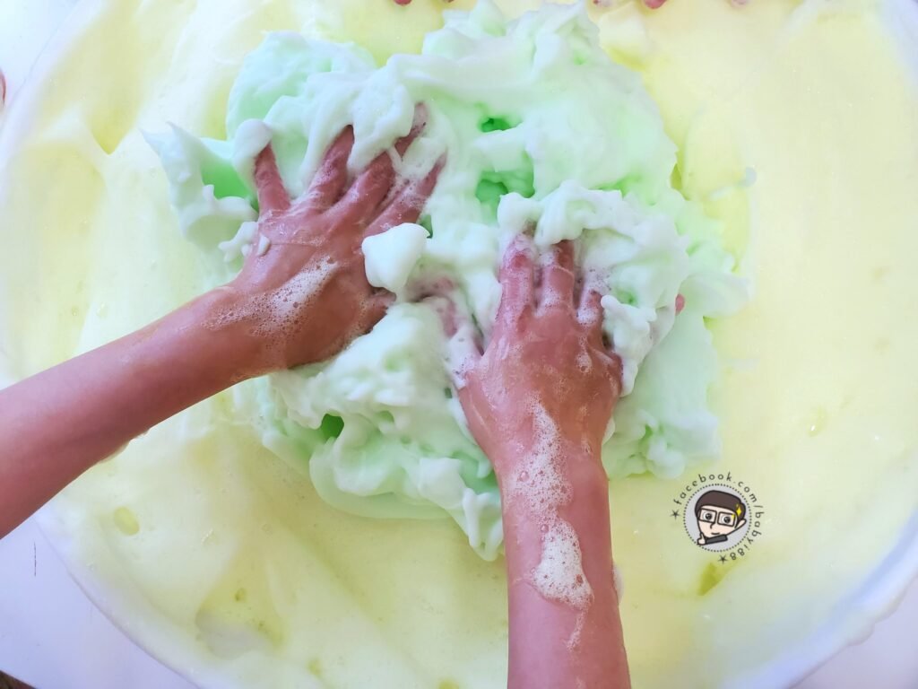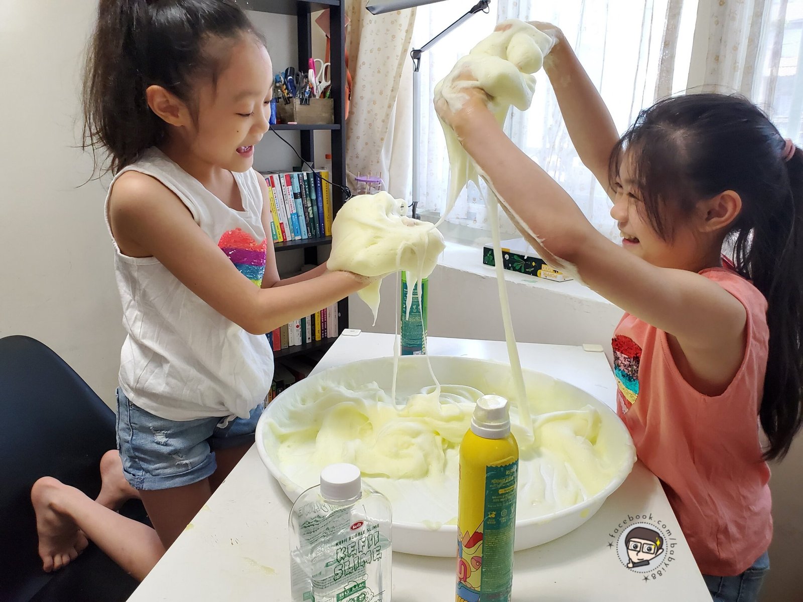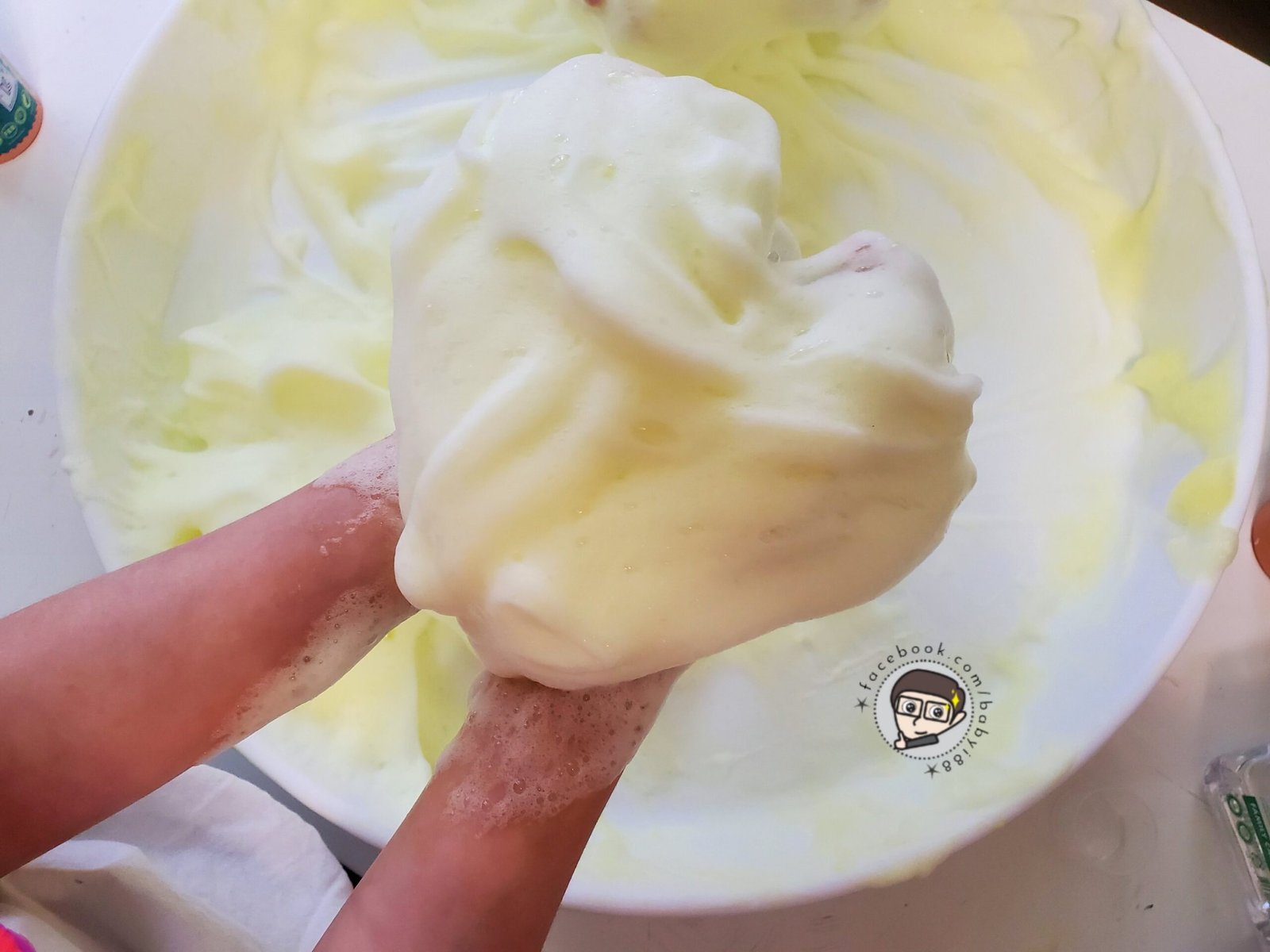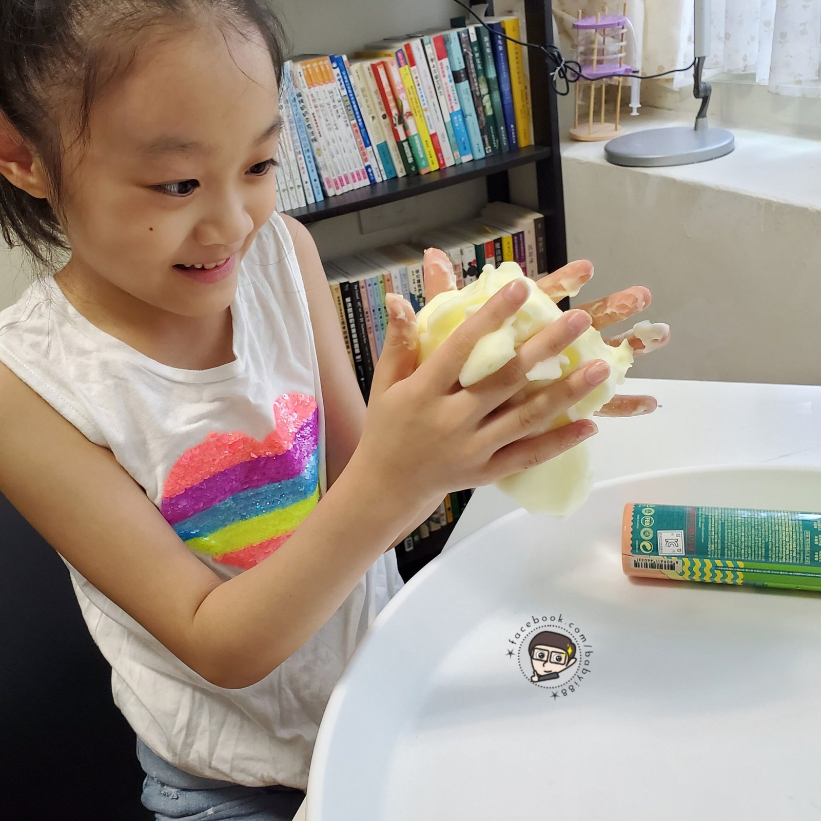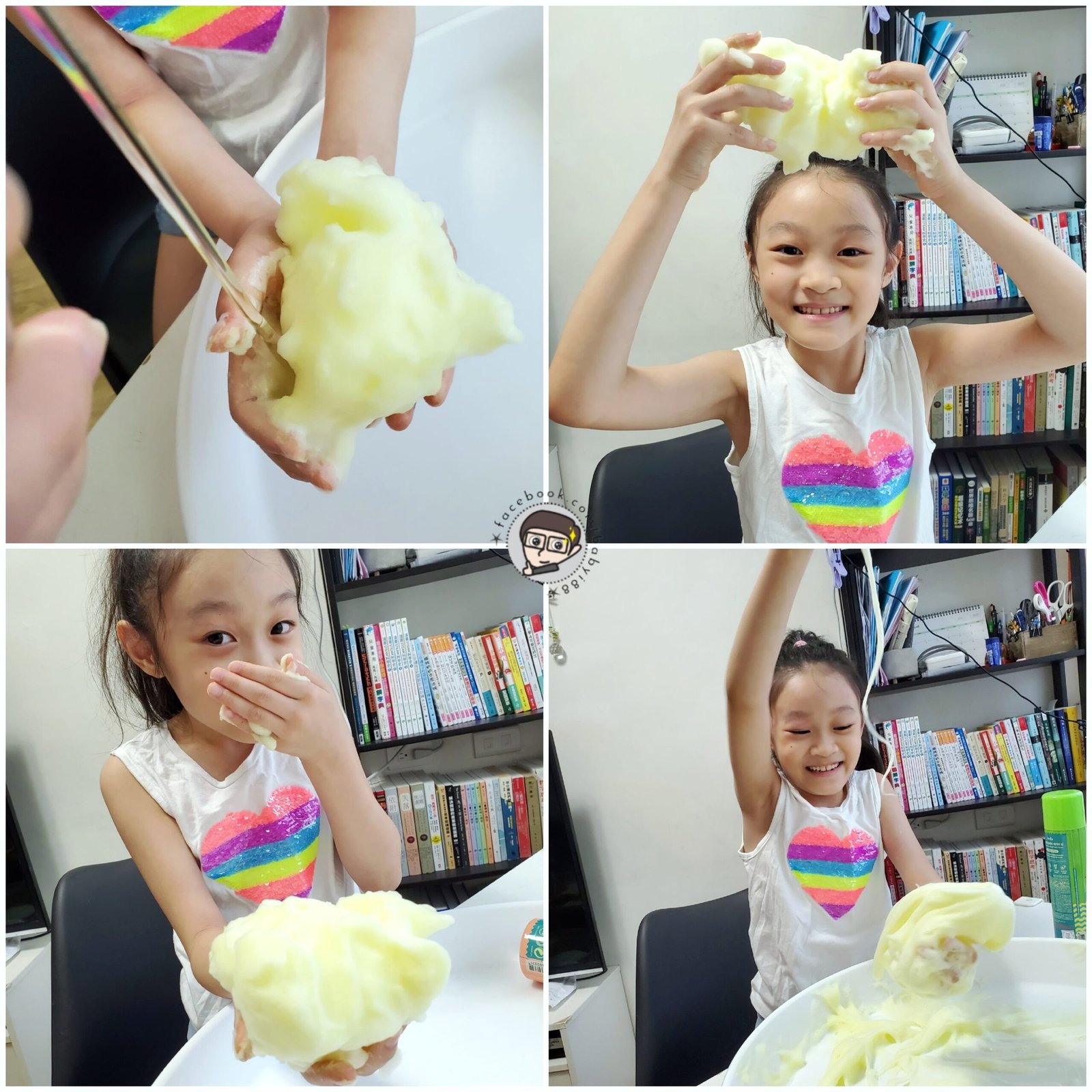 混合之後變成可以無限拉長的棉花糖史萊姆