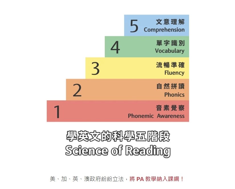 1️⃣ 第一步驟:音素覺察 (Phonemic Awareness, PA),指的是單字的音素的拆、組能力。