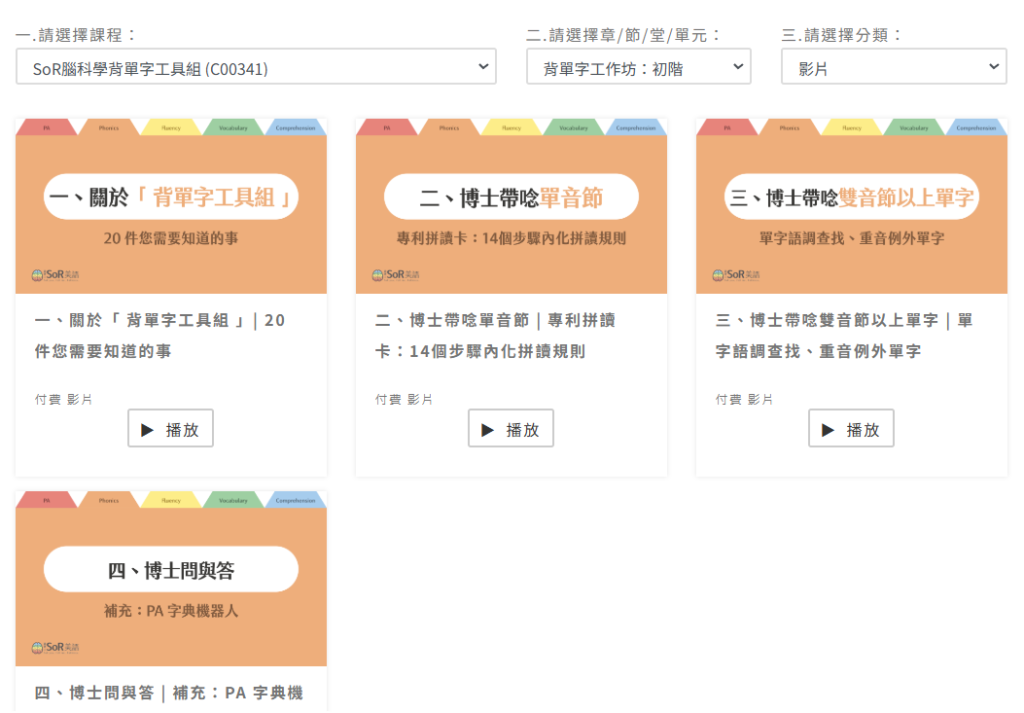 團購加800元就可以多[美語基礎44音]及[背單字工作坊]影音課,沒有使用過SOR字典都建議加購讓自學更容易
