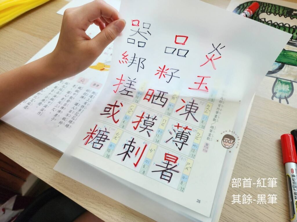 寫的時候也可以練習孩子的專注力,癒到部首別忘記要換顏色喔!